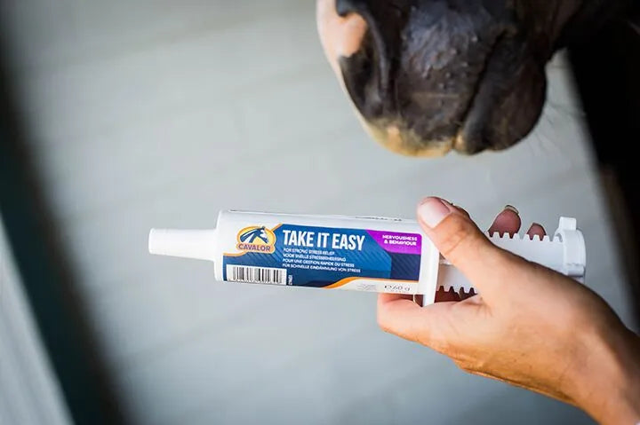 Cavalor Take It Easy promotes composure and relaxation in short-term stress situations. Cavalor Take It Easy is an oral paste in a syringe and is ideal to promote composure and focus during competitions.