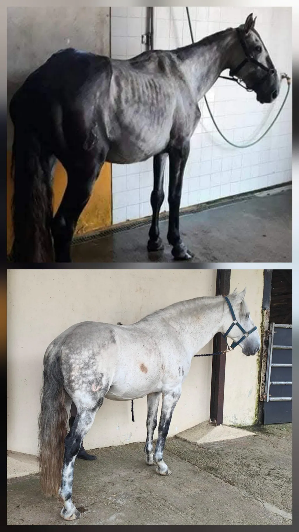 A friend and I bought a 5 year old Lusitano stallion, Marquês in Portugal 5 years ago, in order to rescue him, as he was in severely emaciated condition. He stayed with my friend there for a year until he was in sufficient condition to bring him to the UK to my farm in Devon. But he still wasn't putting on the condition I would have expected, having taken on other horses in the past to condition, although not as severe as him. I worked with 2 different nutritionist over the first 2 years, and still his droppings were often very sloppy and the condition still didn't pile on. Then I came across nutritionist Julie Bratt of HoofTransformation, who advised me to put him on Cavalor Gastroforce. He's been on it for nearly 3 years and almost never has loose droppings now. Look Marquês- nickname 'Moley' -up on Facebook where he has his own group 'Moley. Journey Out of Darkness'.