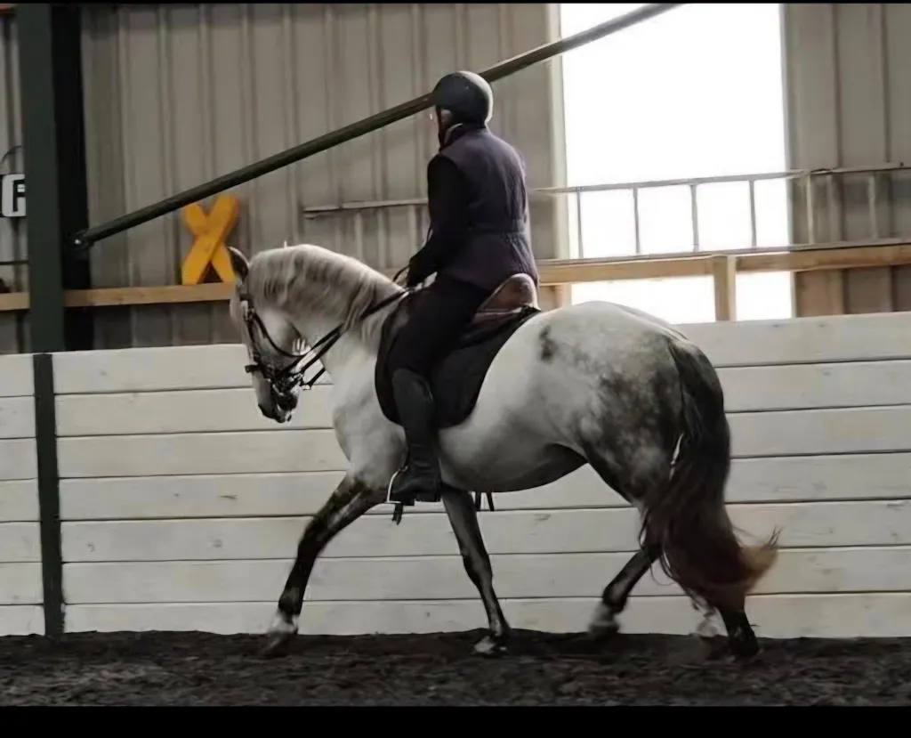 Although he's a very different horse now, he's still been hard to build muscle because he has taken so long to put on flesh, despite having spent anything up to £150 a month on feed and supplements, the complete opposite to my other Iberians who put weight on, on fresh air! Marquês, nickname 'Moley' because we were told by the vet when I bought him, that he had bilateral cataracts. Since his condition built up, 2 separate vets have examined his eyes which are completely fine, but the nake stuck!
